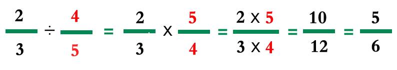 سألته كيف؟ قال لي حين تقسم 6 على 3، فأنت فعلياً تضرب ال6 في 1/3 ، أي في مقلوب العدد 3، لذلك إن أردت قسمة أي رقم على 4/5، ستضرب هذا الرقم في 5/4.